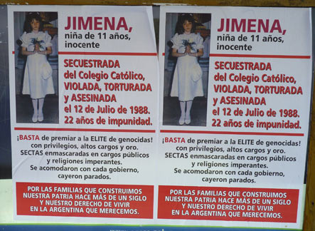 El juez Mauricio Zamudio habló al principio de un pacto de silencio en el colegio. Después decidió cerrar la causa por falta de pruebas, pero fue reabierta por orden de la Cámara. Comenzaban a tomar fuerza algunos rumores de que Jimena había visto algo que no debía y que por eso la habían matado.