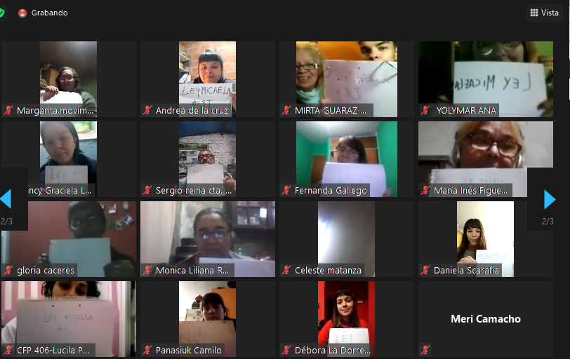 Cerró el encuentro «Yuyo» García, quien además de leer un poema realizado por una compañera de Micaela, convocó a todxs lxs presentes para el 3 de junio, a colocar cintas violetas en las ventanas, acompañando la iniciativa de la fundación.
