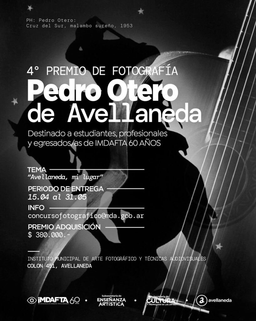 El Instituto Municipal de Arte fotográfico y Técnicas Audiovisuales de Avellaneda, organiza y convoca al Salón Premio Fotográfico “Pedro Otero de Avellaneda” 4ª edición, destinado a estudiantes, profesionales y egresados/as de IMDAFTA residentes en el país sin límite de edad. La inscripción en el Concurso es totalmente gratuita y tiene por objeto estimular la creatividad, incentivar las producciones artísticas de nuestra comunidad y promover la difusión cultural y conservación del patrimonio de nuestra Ciudad.