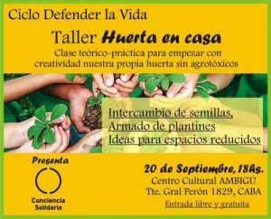 Esta vez compartiremos un taller teórico práctico, de plantines y huerta en casa, para conocer los cuidados de las plantas más comunes de uso comestible. ¡Animate a cultivar tu propio alimento! IntercambioDeSemillas.¡Traé las tuyas! ¡Sorteo de plantines!
