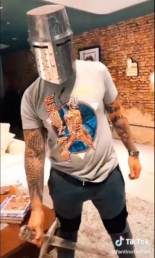 Bueno, solo nos muestra que es una enorme mentira, subió un video a la red Tik Tok doblando un pasaje de la película Gladiador, el problema es que usa un yelmo y una espada relacionada en la historia a los Templarios, es decir, nada que ver con las armas de una película que justamente fue criticada por los historiadores por inconsistencias menos graves que las que muestra Fantino.
