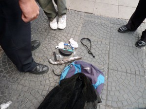 Ya concluyendo la nota en el lugar, se alertó de dos hombres jóvenes que estaban asaltando a un menor de la escuela en la Av. Díaz Vélez y Río de Janeiro, que pudieron ser detenidos por la intervención de un joven que vendía block anotadores en la mencionada esquina y no dudo en ayudar a la víctima peleando con uno de los dos delincuentes, instantes en que un Cabo de la comisaría 11 que circulaba en prevención vio la escena y se apersonó deteniendo a ambos delincuentes. Con el procedimiento policial de rigor y el apoyo de otros efectivos que arribaron al lugar, grande fue la sorpresa cuando a uno de los delincuentes se le secuestro una navaja automática y un pistolón que llevaba en la mochila. El menor asaltado por el susto se retiró del lugar y pudo recuperar según los testigos parte de su dinero y el celular.