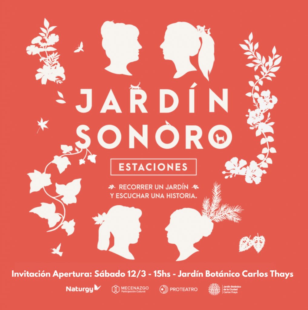 | El sábado 12 de marzo y hasta el martes 22, se presentará en el Jardín Botánico Carlos Thays (Av. Santa Fe 3951) Jardín Sonoro – Estaciones, una aplicación móvil que conecta el espacio público con el teatro, permitiendo recorrer un jardín y escuchar cuatro obras breves de teatro vinculadas con la naturaleza. Al igual que en sus dos ediciones anteriores, son obras escritas, dirigidas e interpretadas por artistas mujeres y en esta edición, cada una de las cuatro obras está atravesada por una estación del año. Las dramaturgas convocadas para esta edición son: María Marull (verano), Consuelo Iturraspe (otoño), Beatriz Catani (invierno) y Sol Rodríguez Seoane (primavera). Esta última fue seleccionada entre 150 obras recibidas a través de una convocatoria abierta a todo el país. Para disfrutar de la experiencia, se debe descargar la aplicación Jardín Sonoro – Estaciones en el celular desde el App store (Apple) o Play Store (Android), activar el bluetooth, caminar por el Jardín Botánico y buscar los puntos de escucha identificados en el mapa y marcados en el espacio. Luego, se activará una obra de teatro para escuchar. Una vez que se pasa por cada punto del jardín, la pista sonora se guardará en el teléfono para que se pueda escuchar en otro instante y lugar. Obras de Jardín Sonoro – Estaciones: Estación 1 – Verano: «Mi verano», de María Marull. Intérprete: Paula Marull. Canción: Roque Marull. Estación 2 – Otoño: «Stevlana», de Consuelo Iturraspe. Intérprete: Camila Romagnolo. Música: Ariel Obregón. Estación 3 – Invierno: «Una mujer en el piso», de Beatriz Catani. Intérprete: Cynthia Edul. Estación 4 – Primavera: «En el otoño empieza la primavera», de Sol Rodríguez Seoane. Intérprete: Julieta Vallina. Equipo técnico creativo Idea y dirección general: Aliana Alvarez Pacheco y Florencia Lavalle Diseño y arte: Johanna Wilhelm y Gisela Cukier Desarrollo aplicación: Mathias Gatti y Manuel Herrera Diseño sonoro: Emiliano Biaiñ y Facundo de Vedia (Zub Sonido) Asesoramiento y desarrollo geolocalización: Fernando Wermus Diseño de señaléticas: Mavi Rossi y María Eugenia Ruani Montaje: Alejo Valle Prensa: Marisol Cambre Jardín Sonoro – Estaciones ha sido declarado de interés cultural por el Régimen de Mecenazgo de la Ciudad Autónoma de Buenos Aires -con el patrocinio de Naturgy– y cuenta con el apoyo de Proteatro. Apertura sábado 12 de marzo a las 15 h Jardín Botánico Carlos Thays: Av. Santa Fe 3951 – CABA Horarios: de martes a domingo de 9 a 18h El ingreso al Jardín se cierra a las 17:30h Duración de la experiencia: 60 minutos Actividad libre y gratuita Material fotográfico: click Facebook: click – Instagram: click – YouTube: click No se requiere wifi ni datos, sólo celular y auriculares Hasta el 22 de marzo |