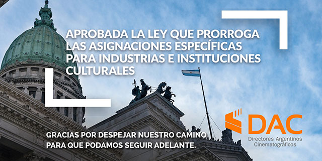 | Gracias por despejar nuestro camino para que podamos seguir adelante. Agradecemos a las Señoras y Señores legisladores de las Honorables Cámaras de Diputados y Senadores que hayan podido comprender la gravísima situación que acechaba el futuro de nuestro cine, teatro, música, radios comunitarias y bibliotecas populares, prorrogando hasta 2072 las asignaciones específicas previstas para industrias e instituciones culturales. Continuaremos como siempre trabajando para reflejar, aquí y en todo el mundo, la identidad de nuestra querida nación. |
