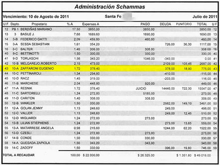 Para dejar asentado que la última propiedad descubierta pertenece al magistrado, la Alameda publicó una copia de las expensas donde figura impreso su nombre junto al resto de los propietarios del edificio en cuestión. Además, describe: “Este nuevo prostíbulo a nombre de Zaffaroni funciona en un edificio donde la planta baja existe una galería comercial. El prostíbulo lo atiende Ana Touche, una actriz porno, según los dichos de comerciantes y vecinos de la zona”.