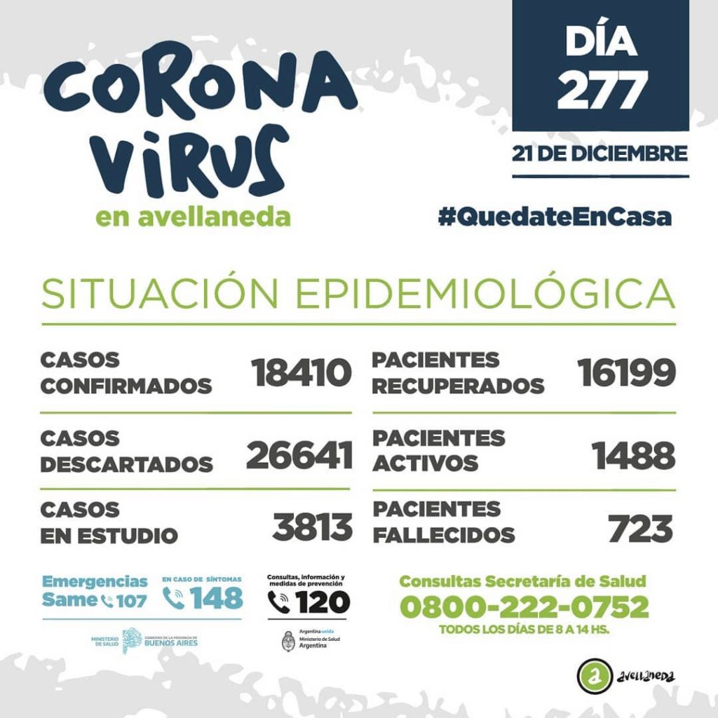De esta manera ya son 18.410 los contagios en el distrito, dentro de los cuales se contemplan a las 723 víctimas fatales y a los 16.199 vecinos que lograron recuperarse de Covid-19. Además, la tasa de letalidad es del 3,93 por ciento.