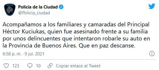 Un efectivo de la División Conductas Delictivas y Eventos Deportivos de la Policía de la Ciudad de Buenos Aires, Héctor José Kuciukas, fue asesinado hoy frente a su familia por tres personas que lo interceptaron al salir de su casa en la localidad de Gerli.
