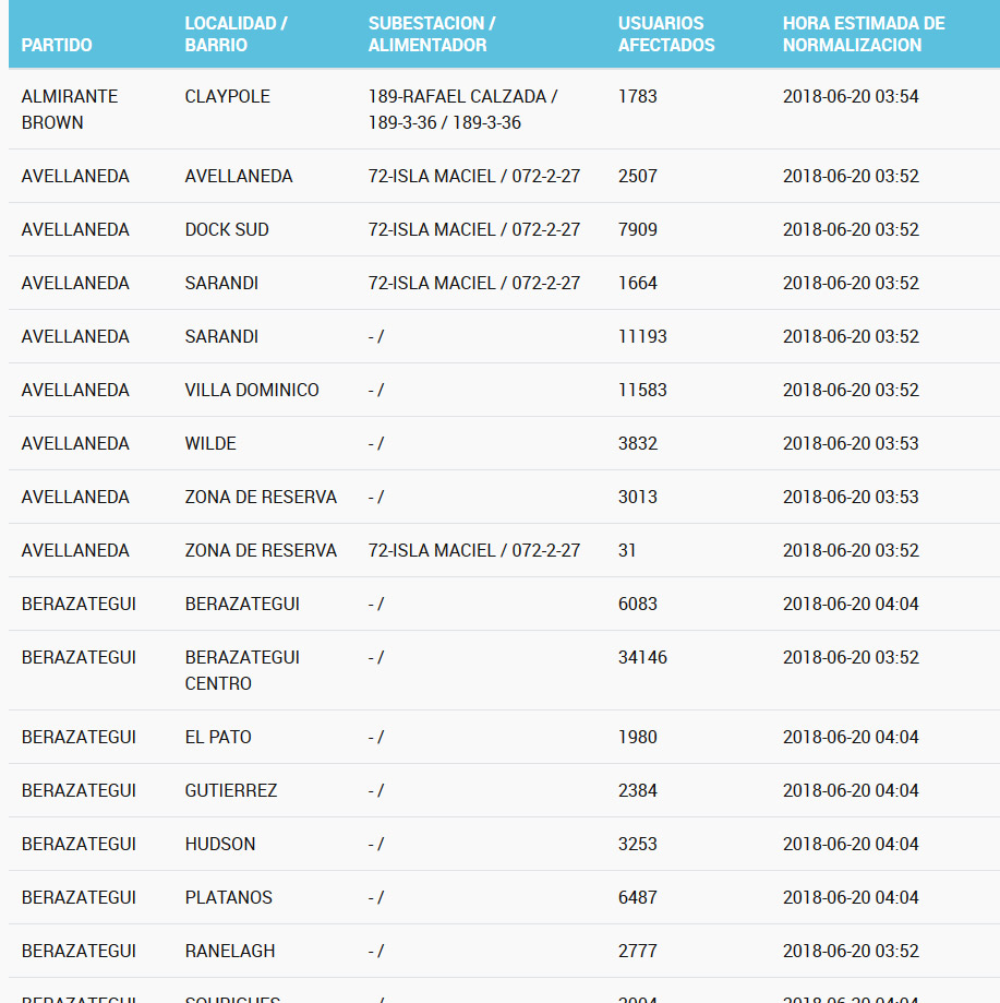 Al parecer el municipio hizo la presentación judicial, obtuvo la medida para mostrar como gestión y la foto y no se interesó más por nada de lo que a diario ocurre en Avellaneda, cortes de energía a miles de vecinos.