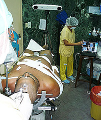 El aparato muestra en una computadora portátil la ubicación precisa de la lesión a tratar.