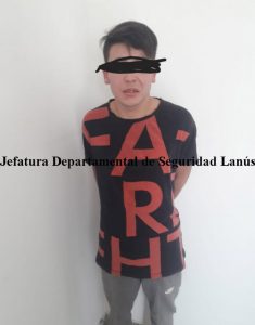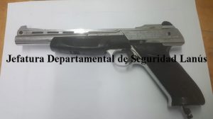 Se pudo aprehender a los dos tripulantes identificados como CARLOS GASPAR EDUARDO LÓPEZ arg. Inst. Solt. 22 años Ddo Blanco Encalada Nro 4004 de Monte Chingolo D.N.I. 39.550.221 y el segundo masculino quien se encontraba como acompañante es identificado como RODRIGO JOAN ORTÍZ arg. Inst.Solt 19 años Ddo Donato Álvarez Nro 4012 misma localidad D.N.I Nro 41.465.06 ( quien manifesta que se encuentra cumpllindo arresto domiciliario por el delito de ROBO ). Posteriormente proceden a una requisa personal arrojando un resultado negativo. Para luego realizar requisa a la unidad procediendo a la incautación en el piso del asiento del chofer a la vista de un arma de metal color plateada con cachas negras de tipo aire comprimido sin numeración Cal 4.5 mm, por lo que con la premura del caso son trasladados a la dependencia policía.