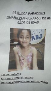 Luego de que un reducido grupo de vecinos junto a familiares realizaran en la madrugada un corte a uno de los accesos del Acceso Sud Este, reclamando que la policía inicie la búsqueda de la menor Naiara Vanina Napoli de 9 años, que había desaparecido de su casa y la madre denunciaba que en la comisaría 5ta no le tomaron la denuncia correspondiente para iniciar la búsqueda.