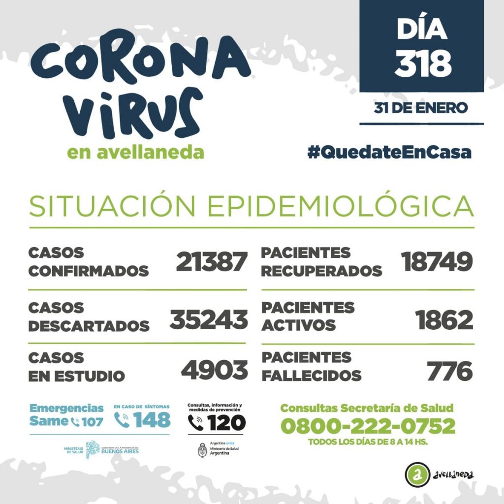 De esta forma suman 776 los fallecidos y la tasa de letalidad en Avellaneda es 3,63 por ciento.