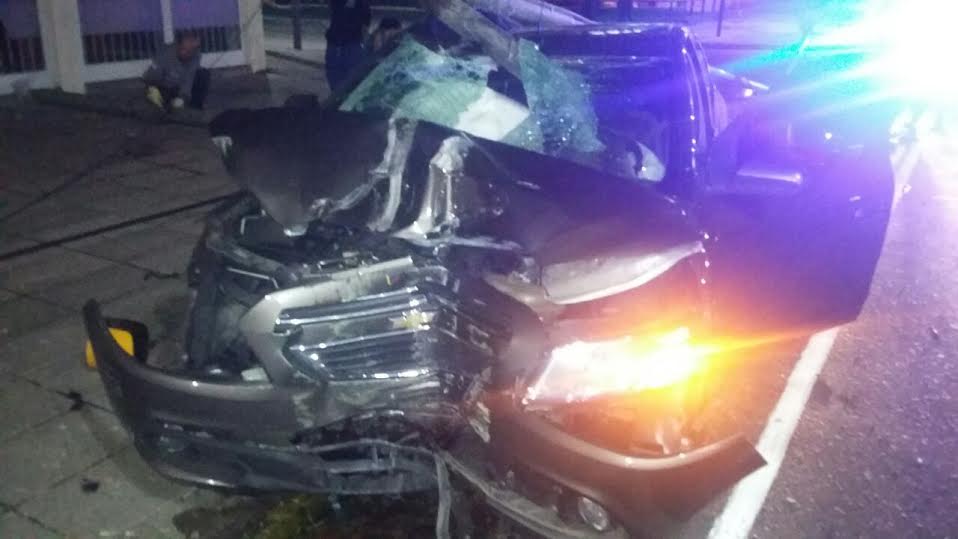Que ante dicho llamado acude la zona 15 y móvil de Policía Local donde al ver al los efectivos acercarse el rodado marca Chevrolet Prisma con la patente OOM-400 se da a la fuga sin cometer ilícito al camión pero en la huida chocan en la intersección de las calles Gelly y Obes y Av. Mitre donde dejan la unidad huyendo dejando dentro del rodado abandonado una pistola calibre .45 Ballester Molina donde también se retiro el camión.