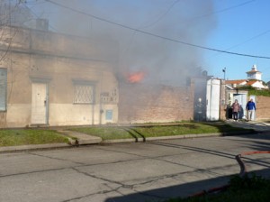 El vocero no pudo precisar las dimensiones del inmueble afectado pero aseguró que se está en plena etapa de combate de las llamas lo que se efectúa mediante dos dotaciones de bomberos y un camión cisterna.