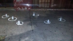 Siete vainas servidas quedaron en la vereda del negocio, lo que patentiza el nivel de agresividad de los malvivientes. El cuerpo sin vida de la víctima fatal, apareció a 45 metros de la puerta del local, sobre la calle Pasco.