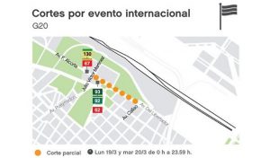 Corte parcial en Avenida Figueroa Alcorta entre av. Callao y Julio Víctor González durante todo el día, lunes y martes. Corte total en contracarril de Avenida del Libertador entre Avenida Pueyrredón y Ortega y Gasset el lunes de 17 a 18 horas.