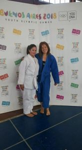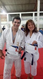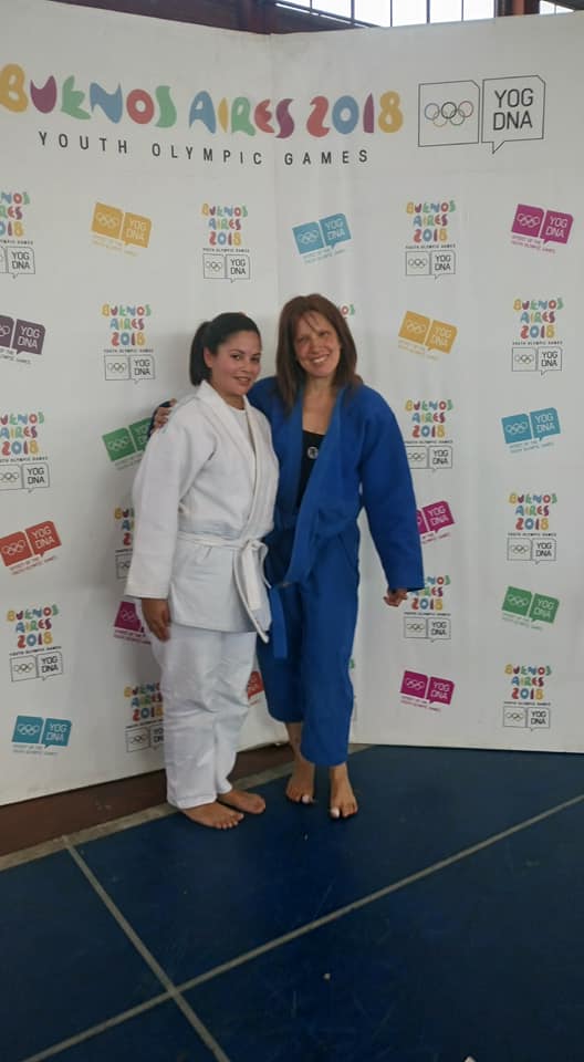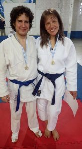 3: En cuánto al judo, cómo llegaste a él, cómo fuiste evolucionando en el mismo, a dónde aprendiste y qué profesores tuviste ?. Comencé judo a los 5 años. A los 4 años mis viejos me anotaron en danzas y a mi hermano en judo. En danzas duré exactamente dos clases. Cuando veía a mi hermano jugar en el tatami, tirarse al piso y luchar, quise pasarme al judo. Y al año siguiente, ya estaba anotada. Realicé judo hasta los 13 años, llegando a 3er Kyu. Después por cuestiones horarias abandoné. A los 38 años, una persona a la que quiero de corazón, me dijo… «el que fué judoca, nunca deja de serlo. Se es judoca toda la vida#. No hizo falta mucho más que al otro día ya estaba averiguando y a las 48 hs me estaba comprando el judogui. Por él volví a ser feliz en un dojo. Hubo muchos abandonos en estos años. Una cirugía de rodilla por rotura de cruzados en abril del 2015, volviendo en noviembre del mismo año. Una cirugía de miomectomía en enero de 2016, volviendo a los dos meses. En diciembre del 2016, me operaron de un cáncer de mama y volví a los dos meses de la cirugía. Aprendí primero en el club San Pio X, el sensei se llamaba Carlos. (No me acuerdo el apellido). En amigos de Villa Luro, tuve varios sensei, pero siempre recuerdo las clases de Yoriyuki Yamamoto. Ahora volví al dojo del Club Veléz Sasrfield con Leonardo Gallina y Antonio Cacho Gallina. Dos grandes! Y el mejor regreso que podría haber tenido.