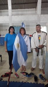 6: Y gracias al judo pudiste viajar representando al país y ser la abanderada de la delegación. Describínos la experiencia con detalles. En los juegos Evita, conocí al dr. Gustavo Matthesius, médico judoca. Tiempo después, me convoca a llevar al judo a las olimpíadas médicas por primera vez. Y me encantó la idea. Viajamos el año pasado a la provincia de San Luis y este año viajamos a Foz do Iguazú a las olimpíadas médicas del Mercosur. Médicos judocas de todo el país llevando el deporte que amamos a una competencia nacional. Fui elegida abanderada nominada por el Dr. Matthesius y aprobada por el resto de los médicos judocas. Fué un dia de competencias en manos del Dr. sensei y maestro Mario Klor. A la mañana con los niños y a la tarde con adultos. Y disfruté ambos momentos con todo. A la mañana enseñándoles a los chicos, a la tarde compitiendo. Pudimos hacer muchos randoris con chicos de Brasil y Paraguay. Perdí un par de combates, pero el placer de luchar es único. Ya que fui a competir a los 15 días de terminar la quimio, no estaba en mi mejor momento. Pero dejar, deje lo mejor de mí. El año que viene, si Dios quiere, viajaremos a Salta.