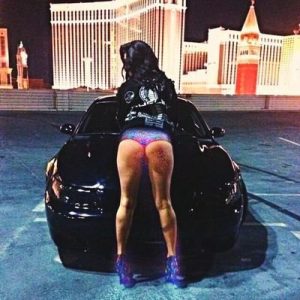 En un video que circula en redes sociales se puede ver a la modelo esposada a una reja, ataviada con un vestido ceñido con estampado de leopardo.