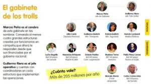 Una investigación periodística llamada «Los trolls de Cambiemos» reveló detalles de la estructura montada por el gobierno nacional de Mauricio Macri para intervenir en las redes sociales con personajes ficticios con el fin de alterar la conversación normal en un tema de discusión. El periodista Mauro Federico aseguró en la pantalla de Crónica HD que el hombre a cargo de la iniciativa es el jefe de Gabinete, Marcos Peña.