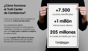 Concretamente, se identificaron unos 7.500 usuarios que llevan adelante 1 millón de interacciones diarias. A nivel presupuestario, el gobierno destinaría más de 205 millones de pesos al año en intentar controlar la conversación en las redes sociales. Allí se anotan algunas cuentas conocidas para la mayoría de los usuarios y periodistas que navegan por dichos canales de comunicación, apuntadas como difusoras de las diversas campañas de difamación y ataques contra la oposición.