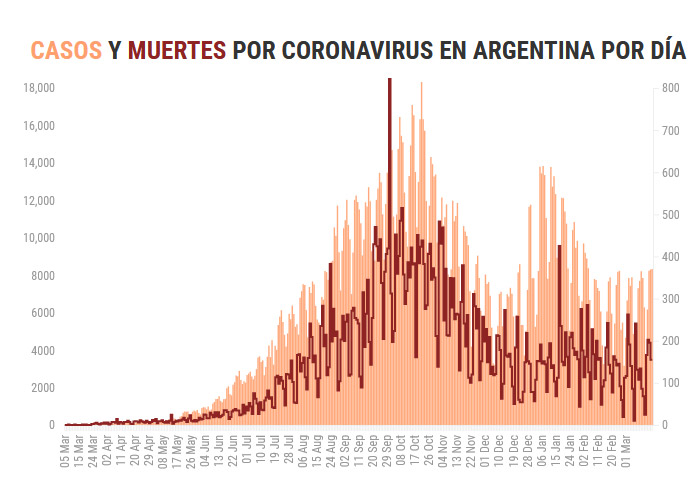 Otras 42 personas murieron y 6.826 fueron reportadas con coronavirus en las últimas 24 horas en la Argentina, con lo que suman 54.517 los fallecidos y 2.241.739 los contagiados desde el inicio de la pandemia, informó hoy el Ministerio de Salud.