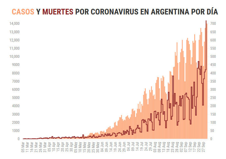 En tanto, en la provincia de Buenos Aires se reportaron 5.407 nuevos casos, en Santa Fe 2.073, Córdoba 1.966, Ciudad de Buenos Aires 924, Mendoza 799, Tucumán 632, Salta 359, Río Negro 287, Chaco 200, Chubut 188, Entre Ríos y Neuquén 186, Jujuy 175, Tierra del Fuego 164, Santa Cruz 142, Santiago del Estero 126, San Luis 93, San Juan 34, La Pampa 28, La Rioja 22, Corrientes 7 y Catamarca 5.