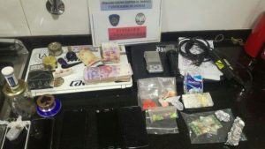 También se incautaron 6 vehículos (3 motos Motomel Blitz, 1 camioneta Ford Ecosport, 1 automóvil Peugeo. 408 y 1 automóvil Volkswagen Gol Power) y las sumas de 77.015 pesos y 400 dólares en efectivo.
