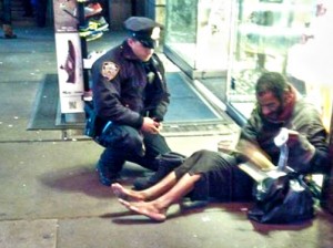 El oficial fue captado por el teléfono celular de una turista de Arizona en el momento en que le obsequiaba a un vagabundo un par de botas nuevas.