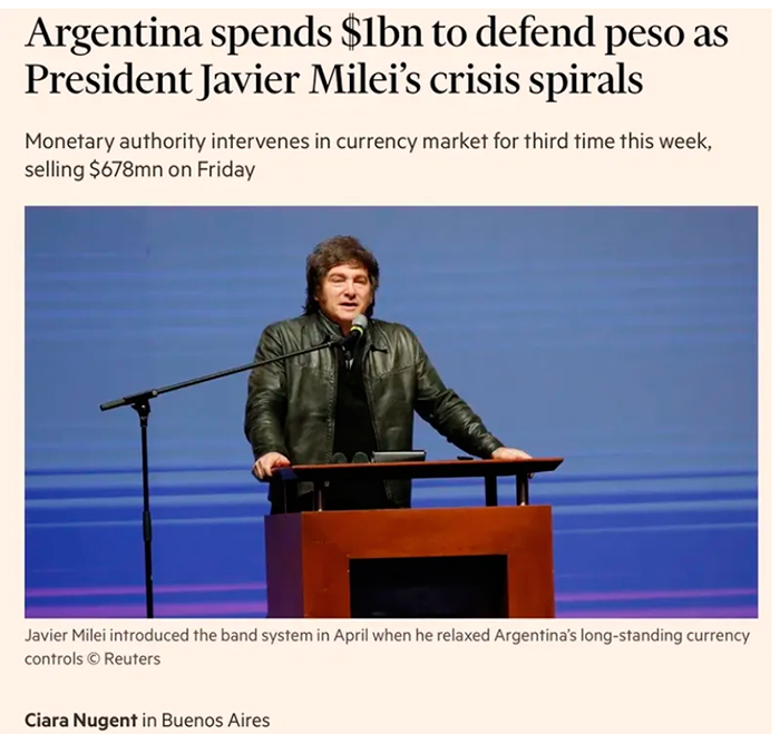 El artículo, firmado por la periodista Ciara Nugent, sostiene que la falta de acumulación de reservas generó desconfianza entre los inversores y desató una venta masiva de bonos y del peso argentino. Además, recordó que la reciente derrota electoral del oficialismo en comicios locales reavivó las dudas sobre la continuidad del programa económico y las reformas de mercado.