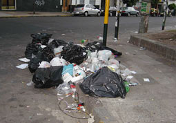Desde el sábado, son varias las esquinas de Buenos Aires, que se encuentran atestadas de residuos, algunos en sus correspondientes bolsas de basura y otros desparramados por la acera.