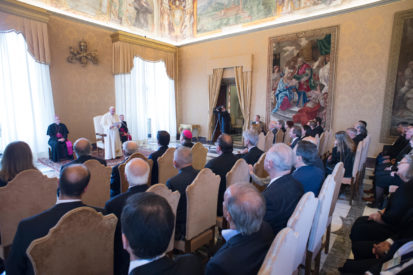 El Papa Francisco recibió en la mañana del 1 de octubre en el Aula del Consistorio del Vaticano, a los 70 participantes del IV Seminario de Ética en el Gerenciamiento de la Salud 2018que se extenderá hasta el 5 de octubre y que cuenta con la presencia de Pedro Orlando Machado, Secretario General del SECLA y Secretario de Asuntos Legislativos y Relaciones Institucionales de la FAECyS y representante de OSECAC, además de directivos de laboratorios, empresas de salud y otras obras sociales gremiales.Al comenzar su discurso en español, el Santo Padre dio la bienvenida y agradeció el trabajo del Presidente de la Comisión de Salud de la Conferencia Episcopal Argentina, Mons. Alberto Bochatey, O.S.A., Obispo Auxiliar de La Plata; del Presidente de la Fundación Consenso Salud, el señor Cristian Mazza y de los entes de salubridad reunidos en el encuentro promovido por la Pontificia Academia para la Vida, centrado en diferentes temas de la salud que tienen gran impacto para la sociedad, basándose en la reflexión ética del Magisterio de la Iglesia.