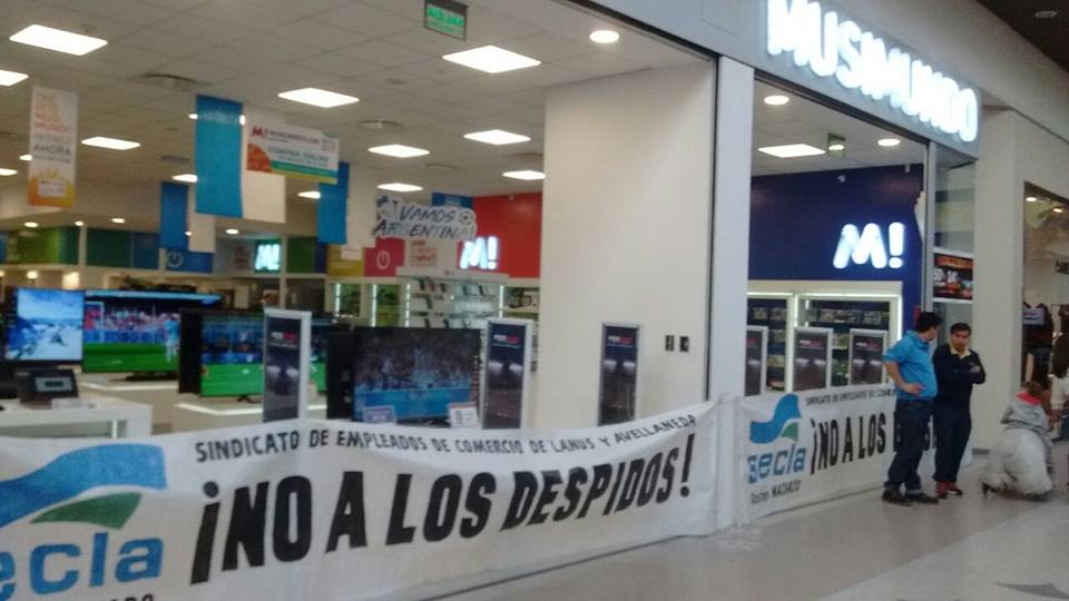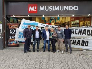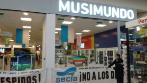 Representantes gremiales, integrantes de la Comisión Directiva y afiliados al SECLA se encuentran en los locales de la empresa Musimundo en la calle 9 de Julio de Lanús y en el Shopping Alto Avellaneda, como muestra de solidaridad con los trabajadores de dichos locales, ante la decisión de la empresa de cerrar la fuente de trabajo y con la intención de que se les abone la indemnización correspondiente a cada trabajador, ante la posibilidad de un posible vaciamiento por parte de la empresa, que además quiere reacomodar en otras sucursales a los/as trabajadores/as de estas localidades y no cumplir con el pago indemnizatorio correspondiente. #NoAlCierre #NoALosDespidos