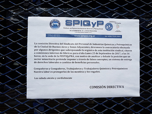 Para aclarar las cosas fui al lugar como debe ser y comprobar de visu si la publicado era cierto, en la esquina efectivamente había un grupo de muchachos, algunos bebiendo y otros parados, el aspecto no era el de estudiantes o yupies pero tampoco me parecieron para temer, así que estacione y descendí para caminar la cuadra, en el sindicato había una guardia de delegados y afiliados con los chalecos del gremio y enfrente un camión de la Guardia de Infantería de la Policía de la Provincia de Buenos Aires, cuando comencé a tomar fotos, me preguntaron de dónde venía y sin problemas les expliqué mi presencia en el lugar, me invitaron a pasar al hall del edificio y realizaron consultas para brindar información, la policía también pregunto y sin problemas en unos minutos me informaron que hay una guardia por amenazas de tomar y romper el sindicato, que el fin de semana balearon el auto del secretario general y por ese motivo se encontraba la policía, respecto de la publicación, negaron que en estos días hubiera pasado algo e incluso que se acercaran fisuras a pedir o molestar porque ellos mismos los hubieran echado del lugar.