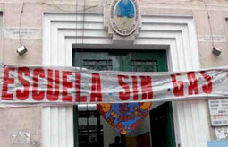 Una de las escuelas afectadas es la 20 del barrio de La Paternal, donde los padres pegaron un cartel en una pared que señala que las obras para extender la red de gas están paralizadas por una deuda de 70 pesos que el gobierno porteño mantiene con Metrogas, aunque esa información fue refutada por Bullrich.
