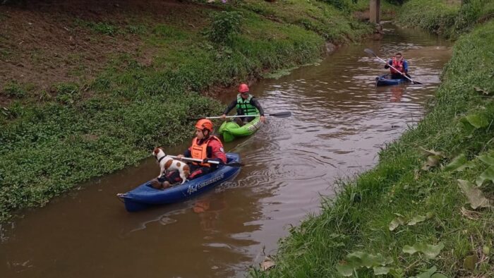 Bomberos Voluntarios de Almirante Brown colaboran en la búsqueda, con voluntarios de instituciones de Ezeiza, Tristán Suárez y Carlos Spegazzini. “Personal de la brigada K9 de nuestra institución se sumó a la búsqueda”, informaron. También lo buscan con drones.
