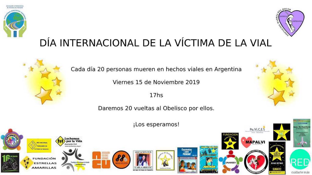 La Asociación Madres del Dolor informó que la actividad fue organizada por varias organizaciones que trabajan por la seguridad vial, que además realizarán diversas acciones de concientización entre el 15 y el 17 de noviembre en el marco del Día Mundial en recuerdo de la Víctima de Siniestro Vial, que se conmemora cada tercer domingo de noviembre por pedido de las Naciones Unidas.