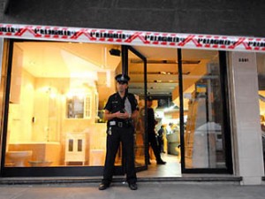 Una mujer que atiende un comercio de productos dietéticos situado al lado de local asaltado precisó a Télam que al momento de ser retirado del lugar, al comerciante «le salía sangre» del cuero cabelludo.