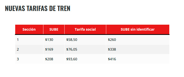 Así, el boleto mínimo de colectivo para recorridos de 0 a 3 kilómetros costará desde mañana de 270 pesos, y el tren 130 pesos para las personas que tengan la tarjeta SUBE con su identidad registrada.