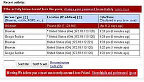 El sistema automatizado compara el IP, el número que identifica a cada dispositivo dentro de una red con protocolo IP, con una amplia locación geográfica. El Director de Ingeniería en Google, Pavni Diwanji, explica: «Mientras que no tenemos la capacidad para determinar desde qué locaciones específicas se acceden a las cuentas, un acceso que llega de un país y algunas horas después es accedida desde otro país, puede activar la alarma».