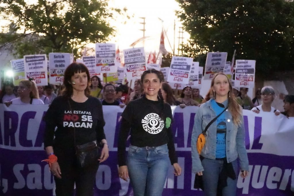 | Luego de la multitudinaria marcha del Encuentro plurinacional de mujeres y disidencias, Cele Fierro, dirigenta nacional del MST – FIT Unidad y Juntas y a la Izquierda, declaró: «Este reencuentro es histórico y se siente la fuerza en las calles de San Luis porque somos miles para torcerle el brazo al gobierno y las patronales, que junto al FMI está decidido a recortan y vulneran los derechos de las mujeres, las disidencias, la juventud y los trabajadores, a destruir nuestro ambiente y territorios, para alimentar su maldita ganancia». «Por eso, esta fuerza hay que llevarla a Capital Federal, donde están todas principales las instituciones que funcionan como una escribanía de las metas ajustadoras del FMI. Ahí donde se toman las decisiones políticas. Ahí, donde está el Congreso y Casa Rosada, para exigir presupuesto. La Catedral para pedir por la separación de la Iglesia y el Estado y anulación de todos los subsidios. La Corte Suprema, para pedir una reforma integral con perspectiva de género, elegir los jueces y fiscales por voto popular. Nada mejor que CABA, para llevar todas las luchas contra la deuda y el extractivismo», finalizó Cele Fierro. |