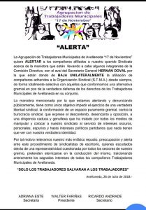 Con un duro comunicado de prensa, la Agrupación 17 de noviembre, denuncia al Secretario General del STMA Hernán Doval de practicas desleales y antisindicales, al desafiliar de forma unilateral a empleados municipales que apoyan a quienes buscan un cambio en la conducción del gremio, transformando su mandato en una «caza de brujas y opositores».