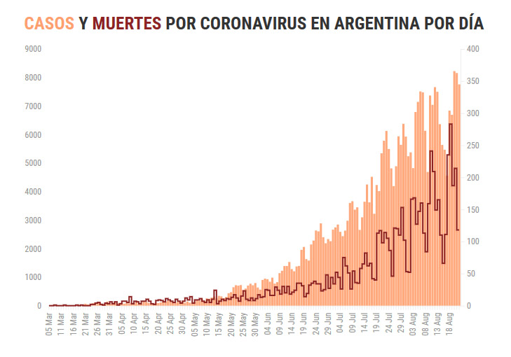 El Ministerio de Salud informó esta tarde que en las últimas 24 horas fallecieron 118 personas, elevando a 6.848 el número de víctimas fatales. Con los 7.759 diagnósticos positivos de hoy, ya son 336.802 los casos confirmados.