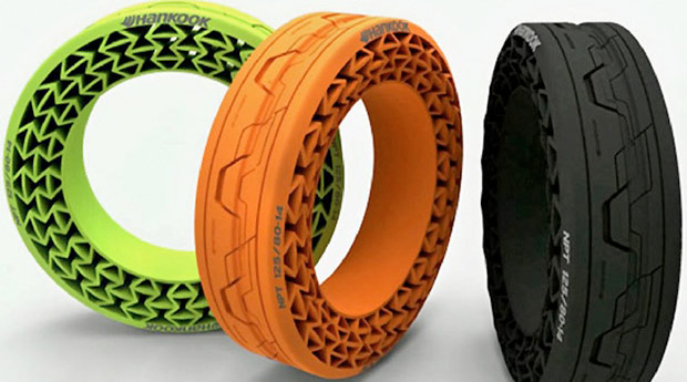 El modelo definitivo deiFlexya es una realidad. Hankook ha hecho posible que exista un neumático sin aire. En su lugar, utiliza un poliuretano muy resistente que elimina los pinchazos y reduce el consumo de combustible, entre otras ventajas.
