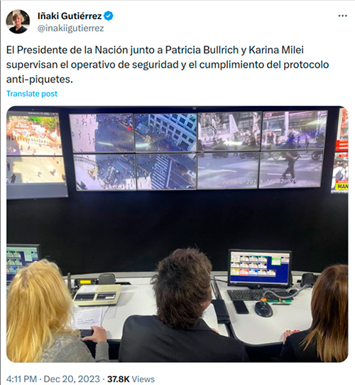 Iñaki Gutiérrez comete un primer y grave error cuando en medio de las primeras protestas y operativos antipiquetes, el presidente Javier Milei se trasladó al Departamento Central de Policía para supervisar la situación. Sin embargo, un hecho insólito quedó al descubierto a través de una foto publicada por Iñaki Gutiérrez, asesor de Comunicación de Milei, generando un revuelo en redes.
