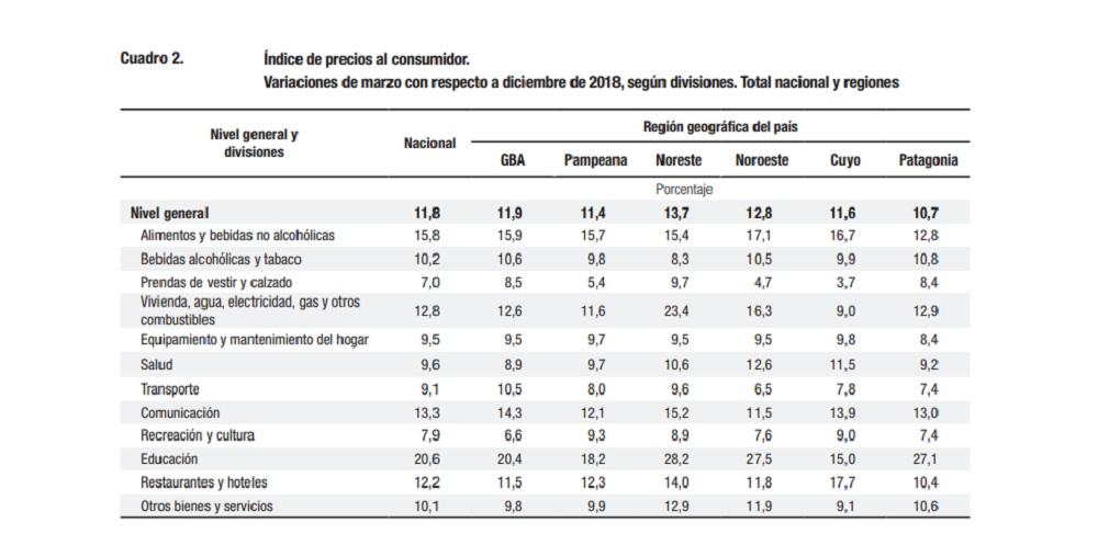 Por debajo de ese valor se ubicaron solamente la región Cuyo con una inflación del 4,4 y la de la Patagonia con un 4,3%, según las cifras oficiales.