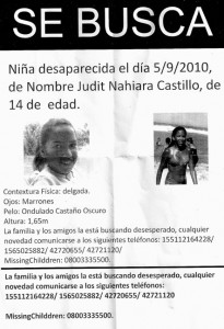 La chica de 14 años había desaparecido en Monte Grande el 5 de septiembre, y apareció anoche en Ingeniero Budge. La policía investiga si Judit Castillo fue vendida a una red de tratas dado que según las versiones, una amiga habría declarado que la había «cambiado» por drogas y 500 pesos.