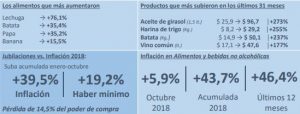En los primeros diez meses del año, los precios de la economía a nivel nacional acumularon un incremento de 39,5%, 20 puntos porcentuales por encima del crecimiento de los mismos meses del año pasado (+19,4% en enero-octubre de 2017). Si tomamos el promedio de los precios en estos diez meses, la suba fue 31,2% respecto de igual período de 2017.