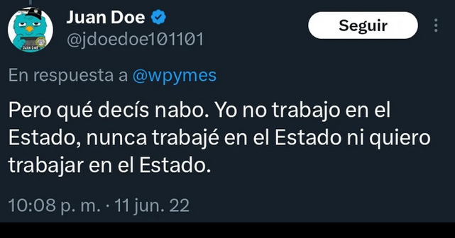 La Oficina de Respuesta Oficial es una señal clara del rumbo comunicacional del Gobierno. Y Juan Doe es su cara visible: el ejemplo perfecto de cómo el mileísmo transformó a un troll libertario en funcionario con poder institucional. Y cuando eso pasa, ya no estamos hablando solo de Twitter, estamos hablando del Estado, y eso debería importarnos.