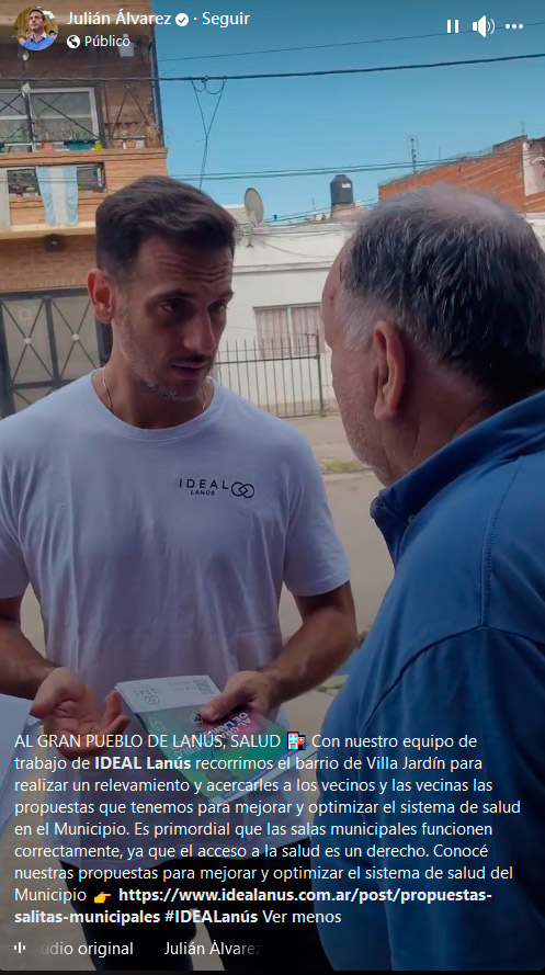Con un importante aparato político, pocas veces visto para un candidato a concejal, Julián recorre los barrios donde reparte volantes y comparte en redes sociales videos mal producidos con los que intenta atraer algún voto, el problema es la falta de coherencia en las propuestas que terminan siendo un motivo para que Julián sea un eterno meme online, ni siquiera tienen criterio para seleccionar la música de sus videos, donde ponen bandas que detestan al peronismo y especialmente al macrismo, así de ridículos son.